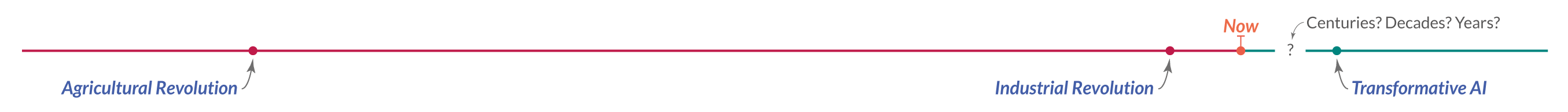 Transformative AI becoming a reality would be an event on that scale. Like the arrival of agriculture 10,000 years ago, or the transition from hand- to machine-manufacturing, it would be an event that would change the world for billions of people around the globe and for the entire trajectory of humanity’s future.