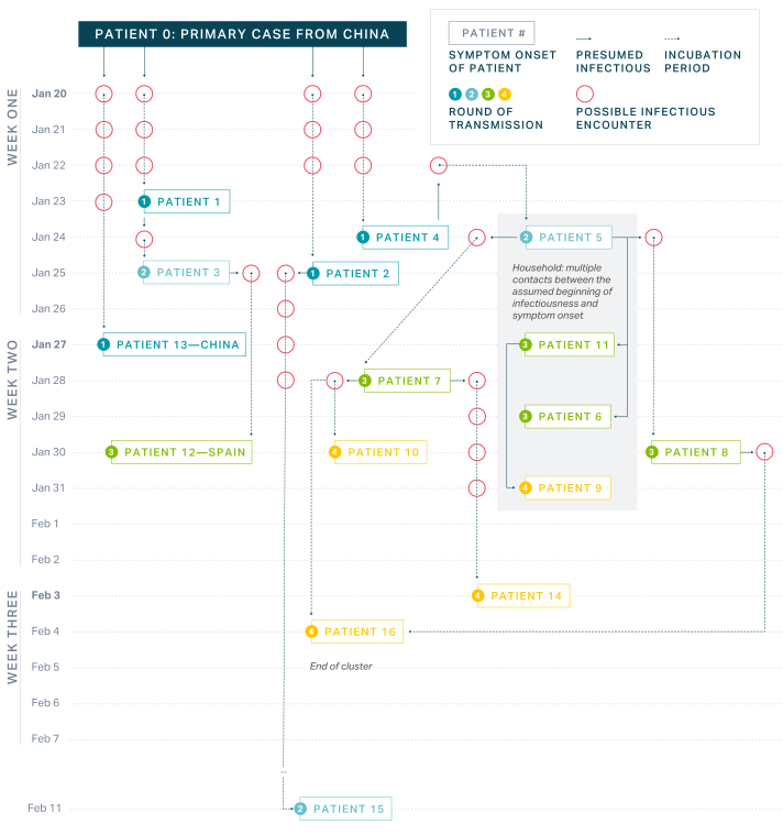 Böhmer MM, Buchholz U, Corman VM, et al. Investigation of a COVID-19 outbreak in Germany resulting from a single travel-associated primary case: a case series. Lancet Infectious Disease. 2020;S1473-3099(20)30314-5. http://doi.org/10.1016/S1473-3099(20)30314-5. Accessed June 5, 2020.