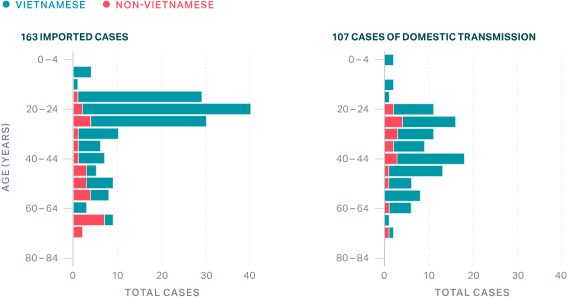 One noteworthy aspect of Vietnam’s approach is that it identified and quarantined suspected cases based on their epidemiological risk of infection (if they had contact with a confirmed case or traveled to a COVID-19 affected country), not whether they exhibited symptoms. The high proportion of cases that never developed symptoms (43 percent) suggests that this approach may have been a key contributor to limiting community transmission at an early stage.30